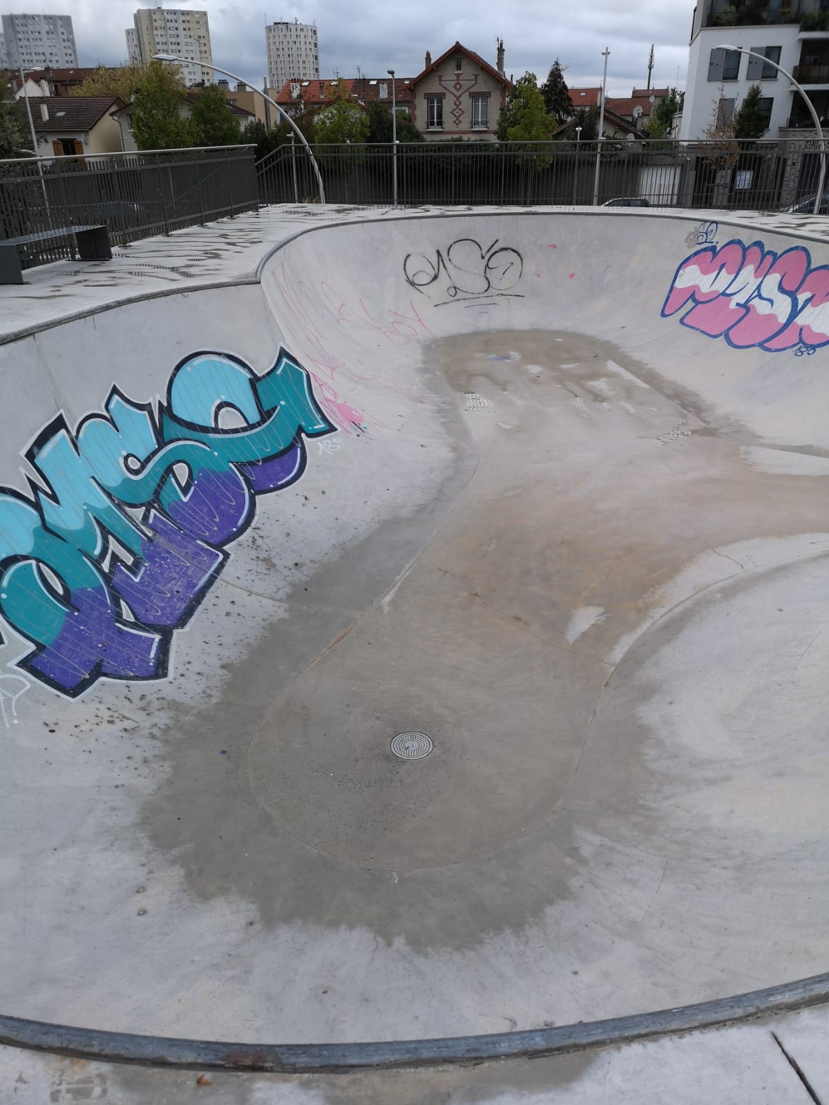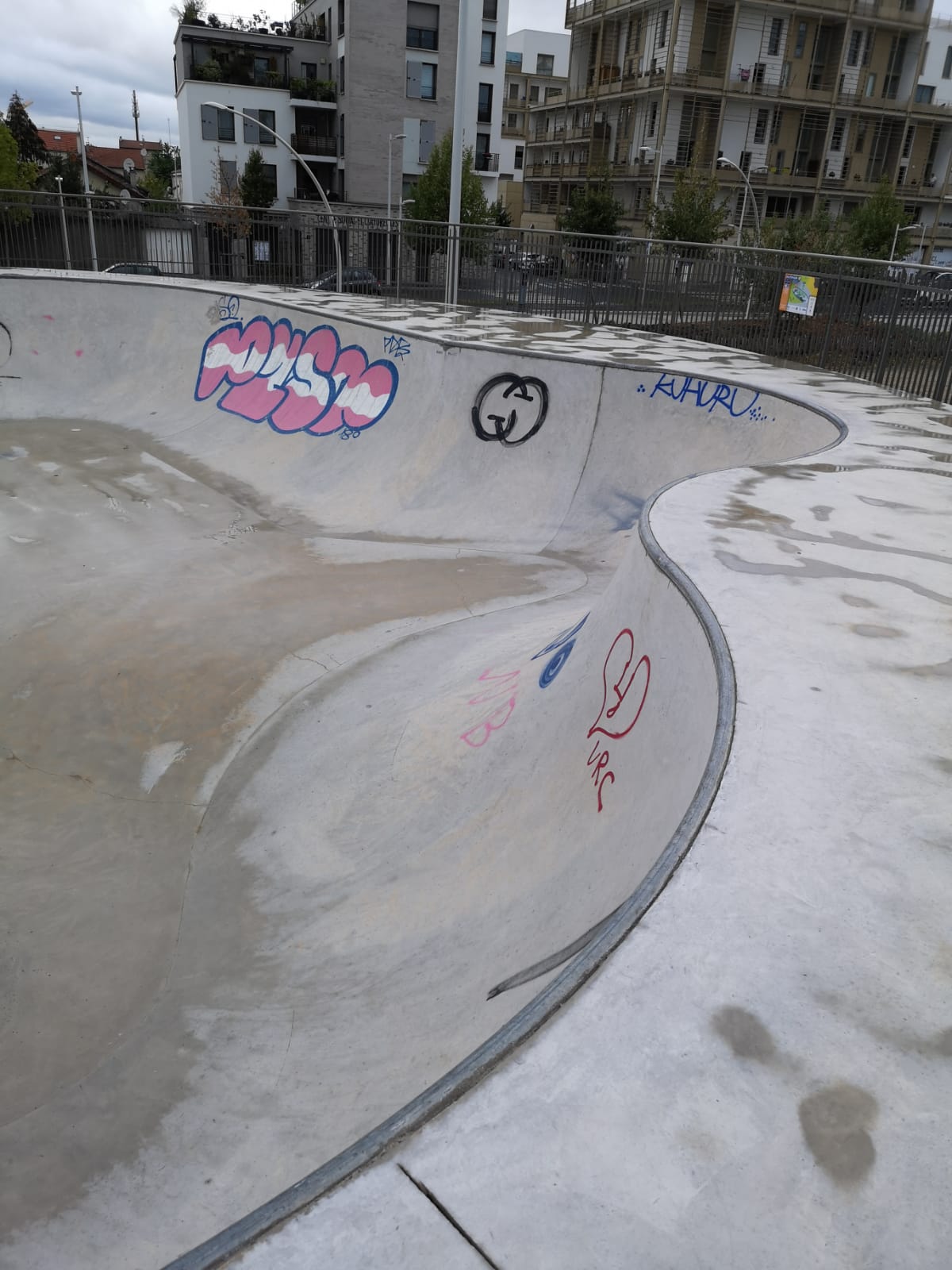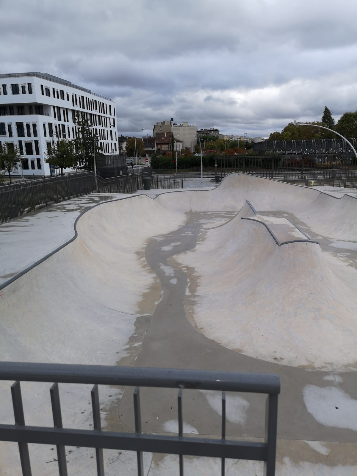 Au top Principalement 2 bowl revêtement nickel pas pour débutants et qq petit autres éléments bétons souvent ferraillé pour pouvoir slider ou grinder , déception d'avoir une rigole de 20cm sur 4cmde profondeur a la réception du gap des marches seul un vélo passe...