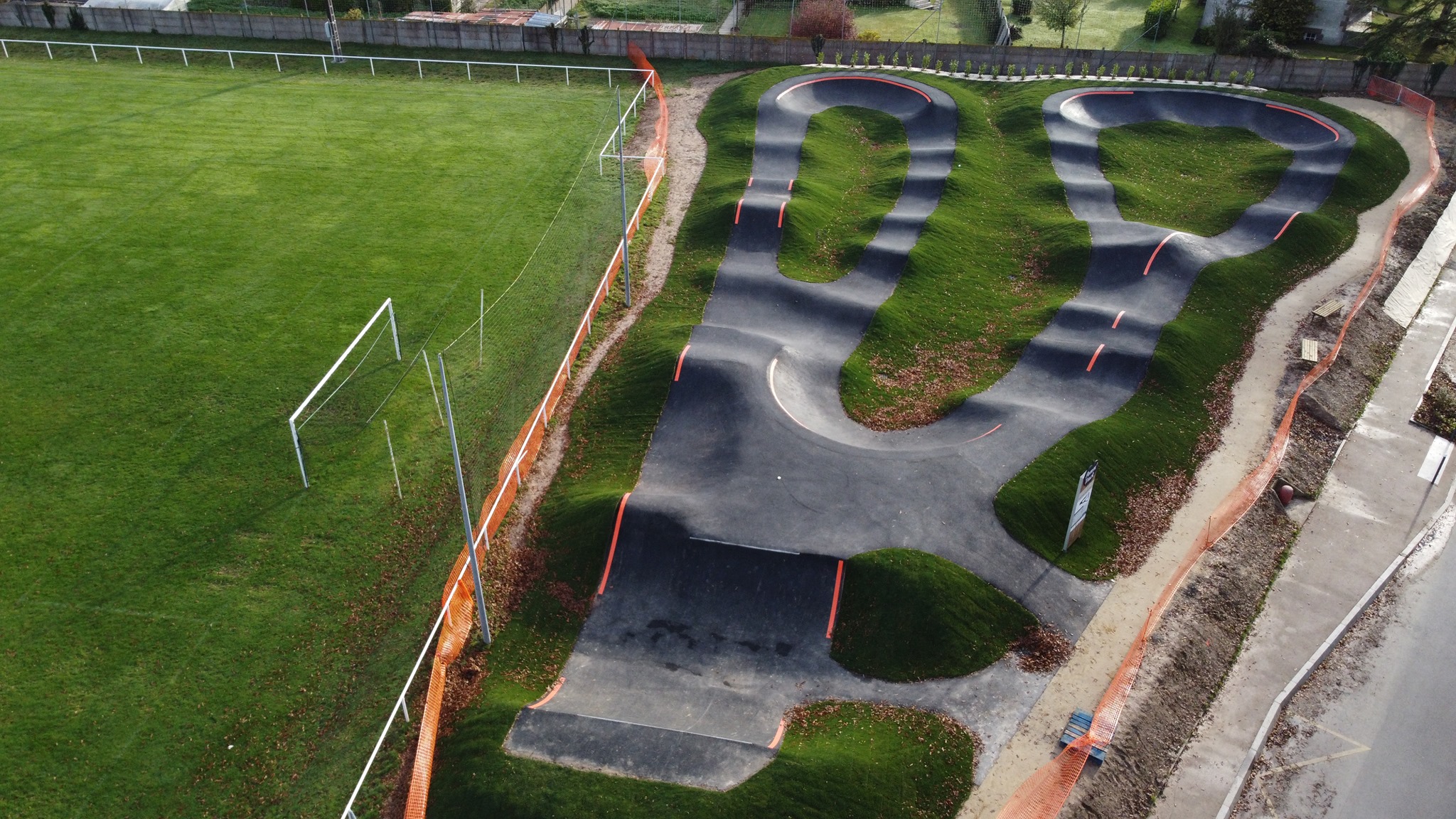 Pumptrack en asphalte, orientée vélo.